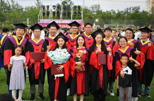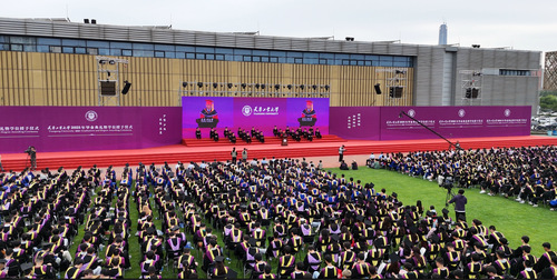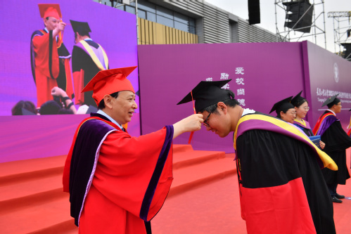 伴随着欢快的乐曲,学位授予仪式正式开始。校领导和校学位评定委员会成员逐一为毕业生们拨穗正冠并合影留念,将这人生的重要瞬间永恒定格。