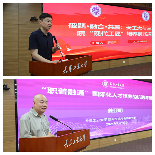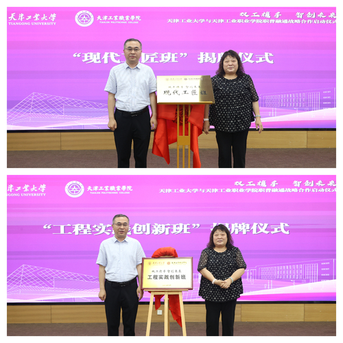 姜勇、杨理连代表双方签署了职普融通战略合作框架协议。林立刚、张秀芳代表双方为“现代工匠班”和“工程实践创新班”揭牌。这标志着我市首个深度整合普通高等教育与职业教育资源的创新培养模式正式落地。天津工业职业学院教务部部长谭起兵、c7网页版国际教育学院院长姜亚明分别作了主旨报告。