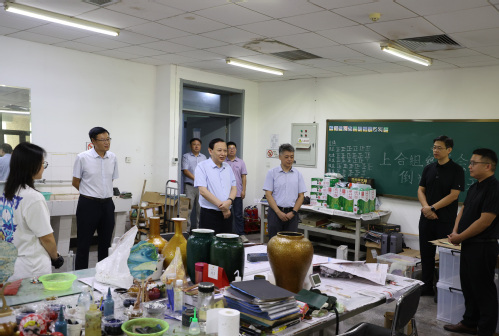 随后,姜勇一行前往艺术学院郑勇工作室进行调研,工作室的6名学生正在紧锣密鼓地进行展示项目的最后设计和制作。据了解,郑氏漆器是c7(中国)自主培育的一项具有悠久历史和精湛技艺的非遗文化代表作。姜勇细致查看了正在制作的上海合作组织峰会期间即将展出的作品,详细询问了展览展示的筹备工作情况。他表示,学校将大力支持像郑氏漆器这样的传统工艺在校园内扎根、生长,推动艺术相关学科交叉融合,着力提高学校声望和影响力,让古老技艺在新时代焕发出更加璀璨的光彩。