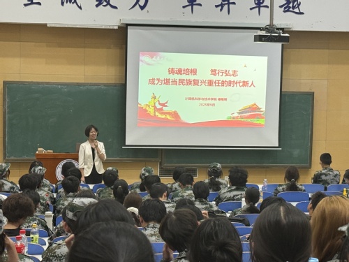 楼稚明结合中国人民抗日战争暨世界反法西斯战争胜利80周年、上合峰会等重要时间节点和重大事件,深入阐释了在新时代坚定理想信念、厚植家国情怀的重要意义。通过讲述邓稼先、张桂梅、黄文秀等先进典型的感人事迹,她鼓励新生将个人理想融入国家发展大局,以青春“小我”书写强国“大我”。