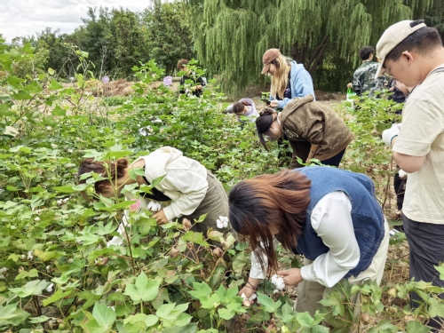据悉,此次采摘的棉花将被运往学院实验室,经过清花、梳棉、并条、粗纱、细纱等工序,最终织成布匹将赠予南开区阳光小学,作为大中小思政一体化建设的珍贵礼物。