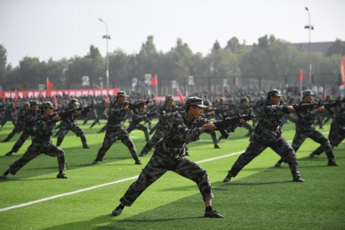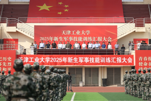 汇报大会在庄严的升国旗仪式中拉开序幕。20个分列式方队以整齐划一的步伐、高亢嘹亮的口号依次通过主席台,充分展现了天工学子朝气蓬勃、奋发向上的精神风貌。在军事技能汇报展示中,女子匕首术刚柔并济,一招一式诠释巾帼不让须眉的飒爽英姿;战术方阵持枪匍匐、翻越障碍,班组协同战术演示将汇报大会推向高潮,赢得现场师生热烈掌声;男子刺杀操方阵由500名2025级新生组成,动作刚猛有力、气势如虹,突刺格挡间彰显敢打必胜的坚定信念。